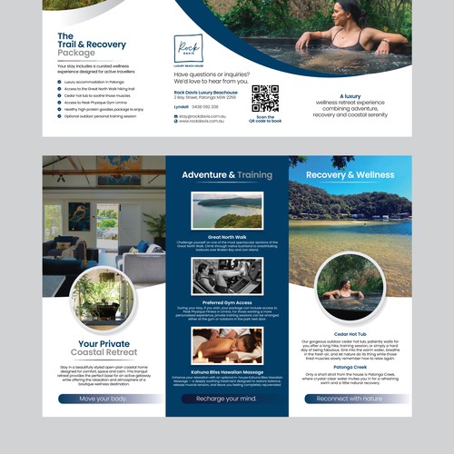 I would like a Tri-fold flyer is for a my Air BnB. I want to promote a health and wellness package. It will include;