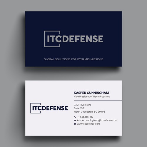 We are seeking a fresh, professional business card design for ITC Defense, a government contractor specializing in defen